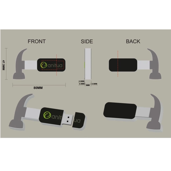 Custom 2D Shaped USB Flash Drive (Indent Only). NO MOULD CHARGES. Minimum order of 100pcs. Bulk packed in bubble-bags