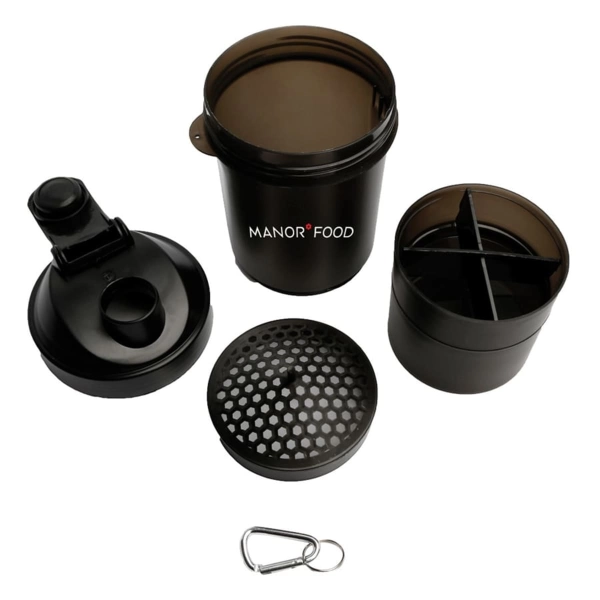 The 3-in-1 Shaker Cup is the ultimate solution for your mixing needs. With a 400ml capacity, this cup features three compartments: the bottom for powders, the middle for supplements, and the large top area for shaking and mixing. Equipped with a carabiner key chain and a blender screen, it ensures your powders mix quickly and effortlessly.