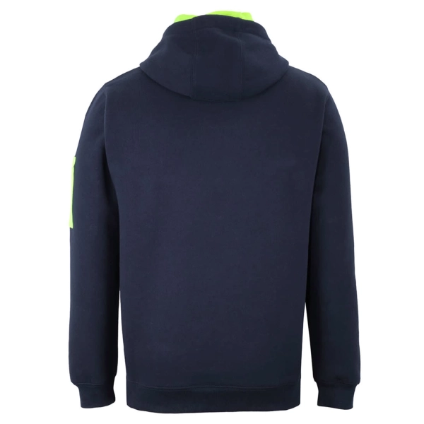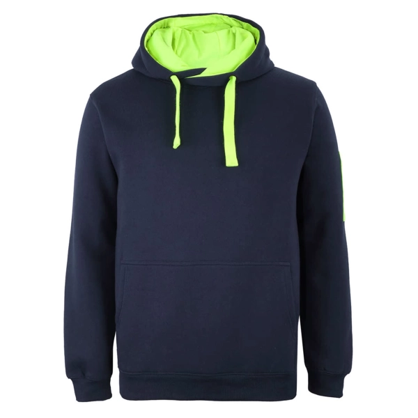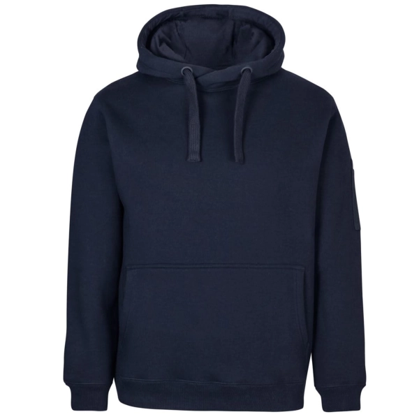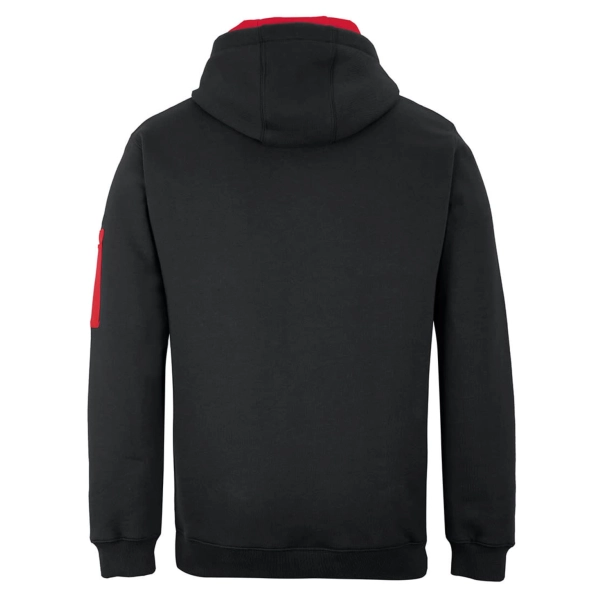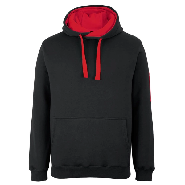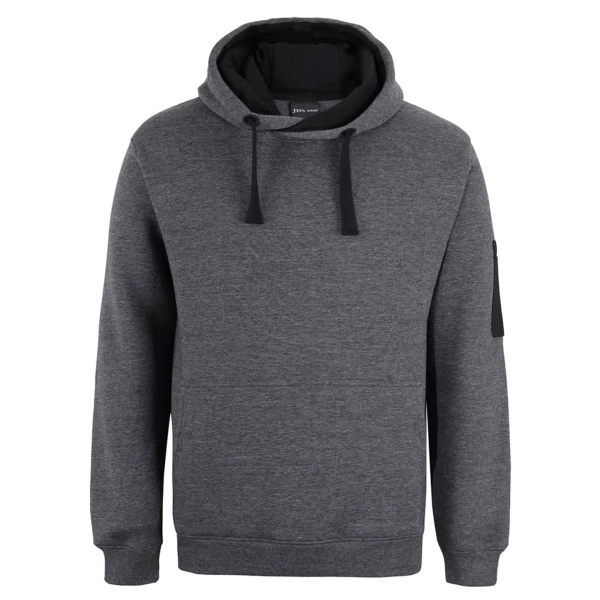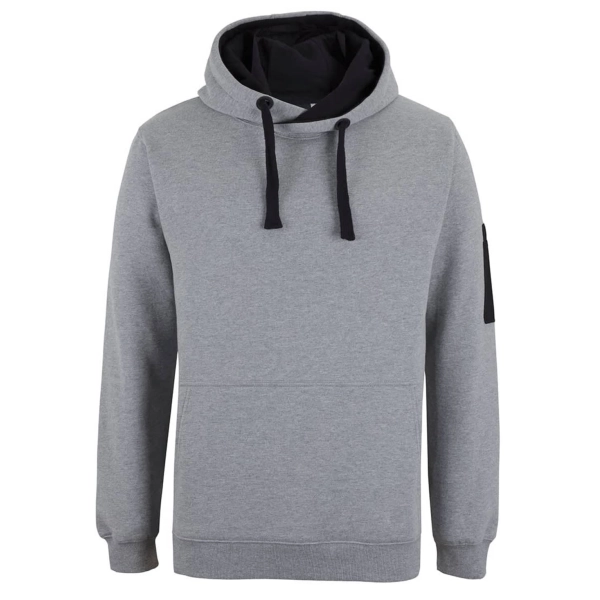 Classic fit | 80% Cotton for comfort, and 20% Polyester for durability | Charcoal Marle/Black: 65% Polyester, and 35% Cotton | 350gsm brushed fleece | Rib hem on cuff and body | Kanga pocket at CF | Pen pocket on left hand sleeve | Fully lined hood in Jersey | Hood with drawcord