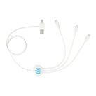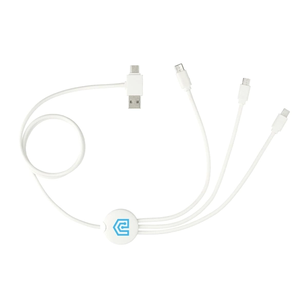 The 5-in-1 Charging Cable with Antimicrobial Additive includes a USB-A tip and Type-C Input tip on one side and the other side includes a 2-in-1 dual compatible tip for both Apple® iOS and Android devices (up to 2A current), a micro tip (up to 3A current) and a Type-C Output tip (up to 3A current) . Cable length 990mm. Power Features: Charge 3 Items Simultaneously.