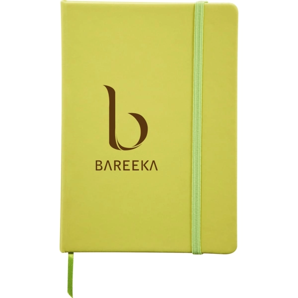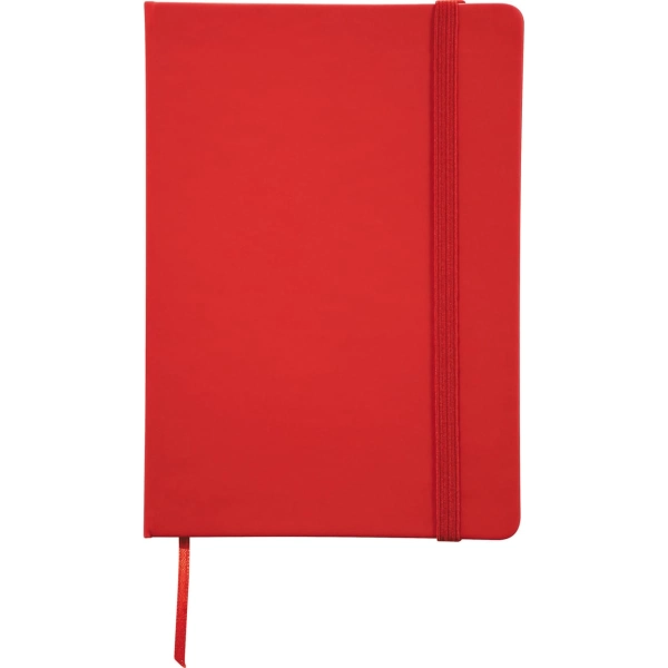 Elastic closure notebook with matching colour ribbon bookmark. 80 ruled page notebook.