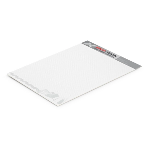 Large sketching pad with 25 leaves of quality 70gsm paper and a cardboard back which can be padded in either portrait or landscape. It is printed using four colour process which gives the option of unlimited spot colours or stunning full colour at no extra cost. PMS colour matches are only approximate. Edge-to-edge printing is available and a sketching grid can be added if required. A production lead time of 25 working days applies to this product. This item can only be ordered in the quoted order quantities.