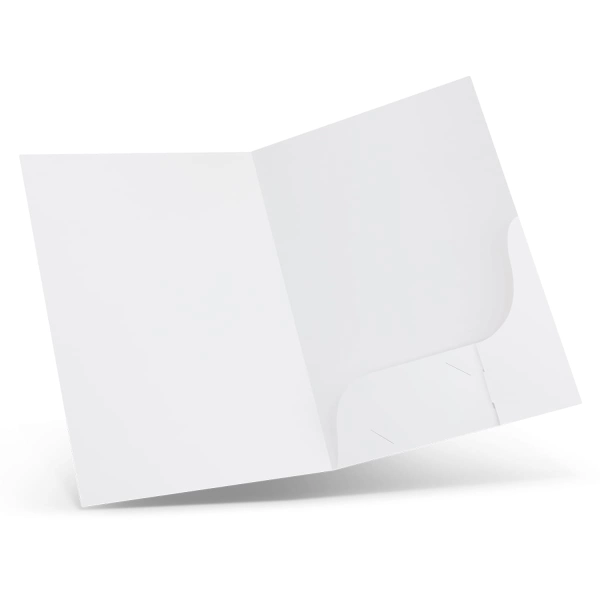 Standard A4 presentation folder with a business card holder. It is manufactured from 300gsm gloss cardboard with matt cardboard available on request. The folder is supplied flat packed and is easily assembled in a few seconds. It can be printed edge-to-edge in stunning full colour on one or both sides and is finished with a clear aqueous coating to ensure the printing is scuff resistant. PMS colour matches are approximate. A lead time of 15 working days applies to this product.