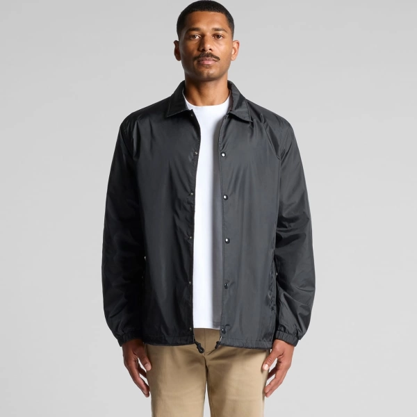 The AS Colour Coach Jacket, a regular fitting outerwear style crafted from light weight nylon with a polyester lining. Features include a collared design, snap dome closure, two side pockets, and elastic cuffs. Complete with a drawcord hem for a versatile, functional style.