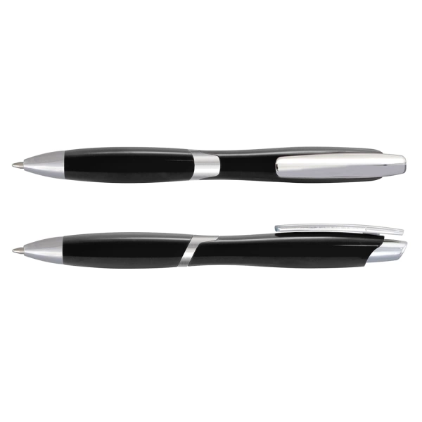 * Retractable plastic ballpoint pen with shiny chrome trim