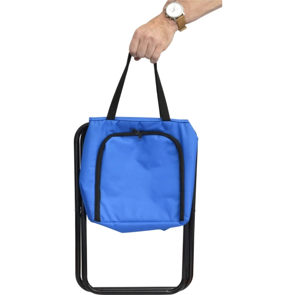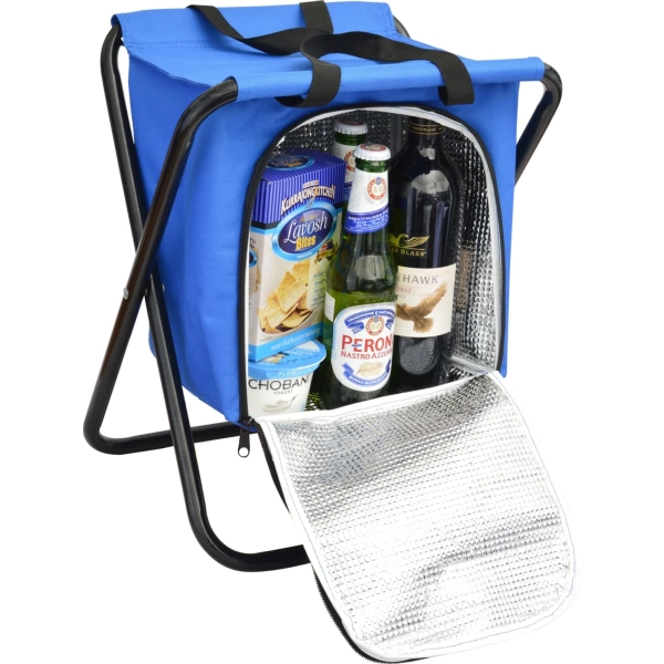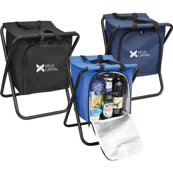 This quality 2-in-1 gift is both a chair and a cooler bag. Made from tough 600d nylon with a super-tough black metal frame and carry handles, it features a fully insulated cooler compartment designed to keep food and drink cool for hours.