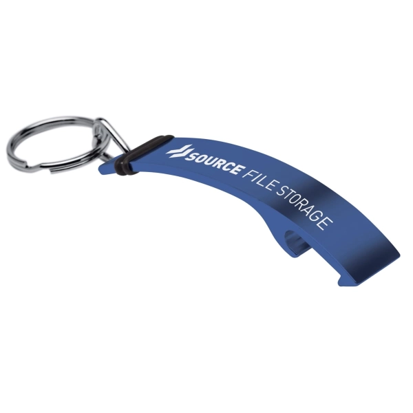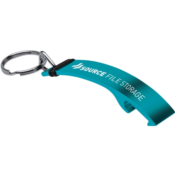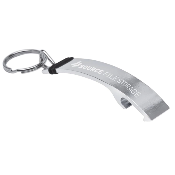 Sleek in appearance, this light-weight Aluminium bottle opener keyring has a large area perfectly suited for displaying your laser engraved logo. Available in 10 colours.