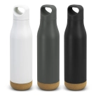 Streamlined 500ml double wall vacuum insulated drink bottle made from stainless steel with a powder coated finish, natural cork base, and screw-on lid with carry handle. Allure is presented in a natural gift box.