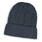 Stylish acrylic beanie which features a chunky cable knit pattern and a roll up cuff. It is available in one size which will fit most people.