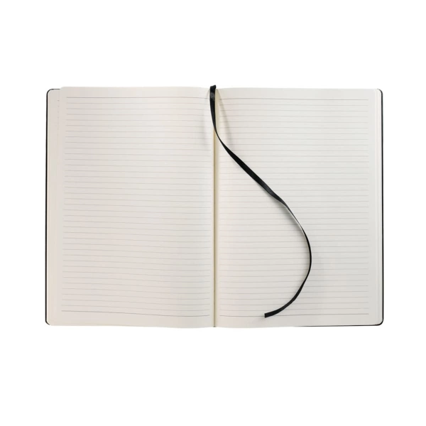Ambassador large Bound JournalBook with built-in elastic closure and ribbon marker. Includes 80 sheets of lined paper.