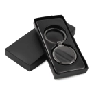 Simple and sophisticated, our glossy circular keychain features a Gunmetal allure for a touch of modern luxury.