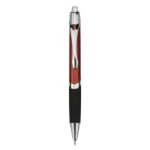 A popular oval-shaped barrel plastic pen with retractable action metallic opaque body with black rubber grip shiny silver chrome trim and metal clip high quality German manufactured black ink refill 1800 meters writing distance tungsten carbide ball provides you with quality writing.