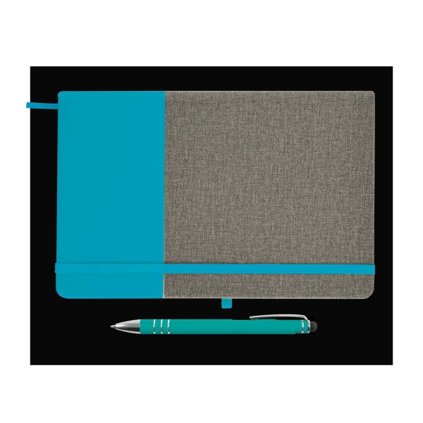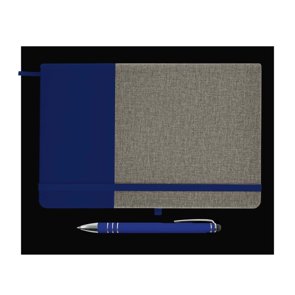 Gift set of Venture Bondi A5 Notebook and Austin Pen packed in 2 piece cardboard gift box with laser cut foam insert.