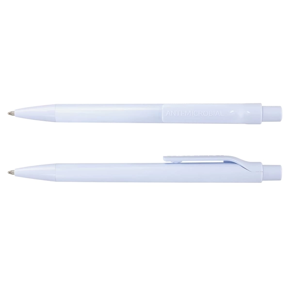 Retractable plastic ballpoint pen which is has an anti-microbial additive in the plastic, making it an ideal pen for use in highly frequented areas. It has text supporting its anti-microbial properties moulded into the clip and features large branding areas on the barrel. It has a blue refill with 1200m of German manufactured Dokumental ink and can be presented in an optional pen sleeve.