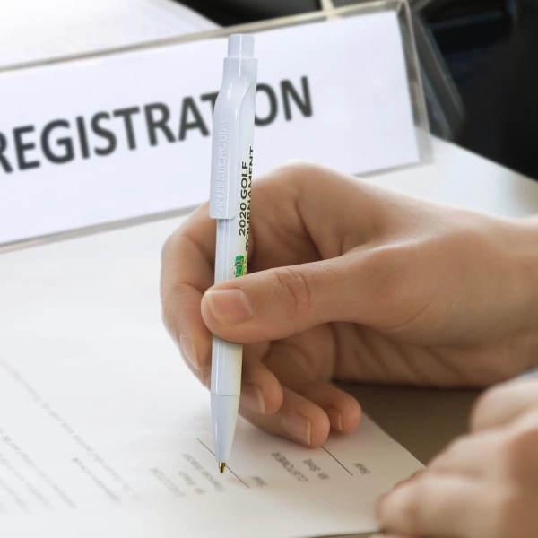 * Retractable plastic ballpoint pen with anti-microbial properties