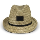 Classic straw fedora with a coloured polyester ribbon and a matching polyester patch for convenient and prominent branding. The fedora has a sweatband for added comfort and is available in three sizes to fit most people.