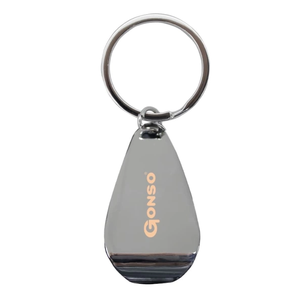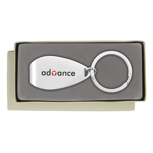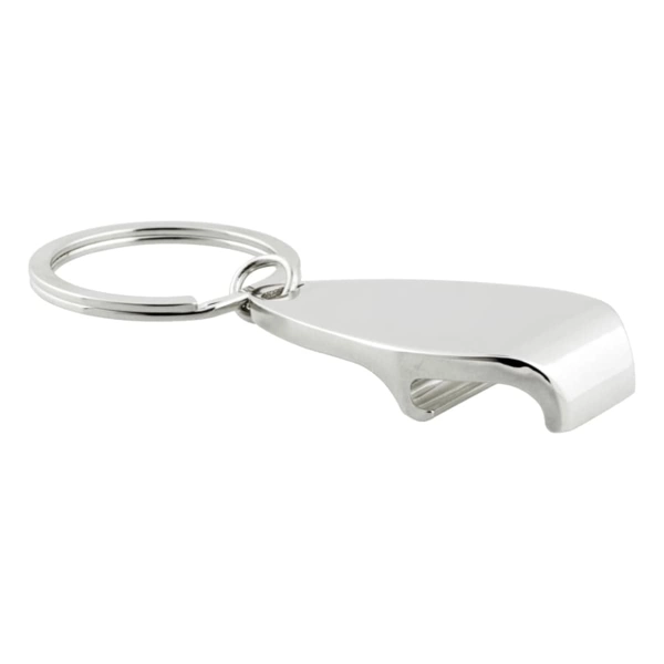 The Apri Keychain is a shiny silver metal keyring featuring a built-in bottle opener, offering both style and practicality. It’s supplied in a sleek black box, making it a great gift or promotional item.