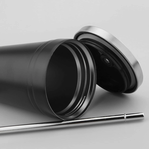 Keep your fresh juice smoothie shake iced coffee or tea cool on the go. 500ml capacity stainless steel tumbler stylish design double walled and vacuum insulated with a stainless steel lid and straw made of 304 grade stainless steel. Matt finishing painted exterior and electrolysis interior BPA free cannot be microwaved and handwashing only. Stainless steel straw packaged separately.