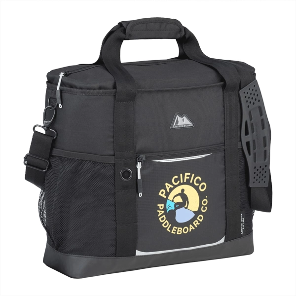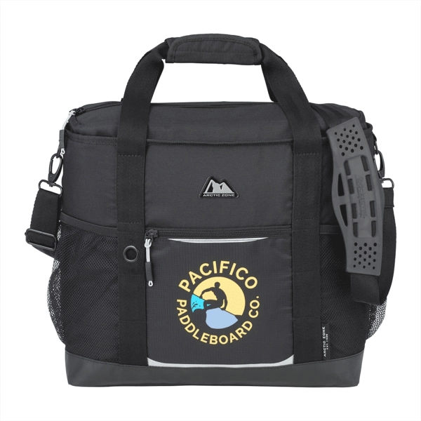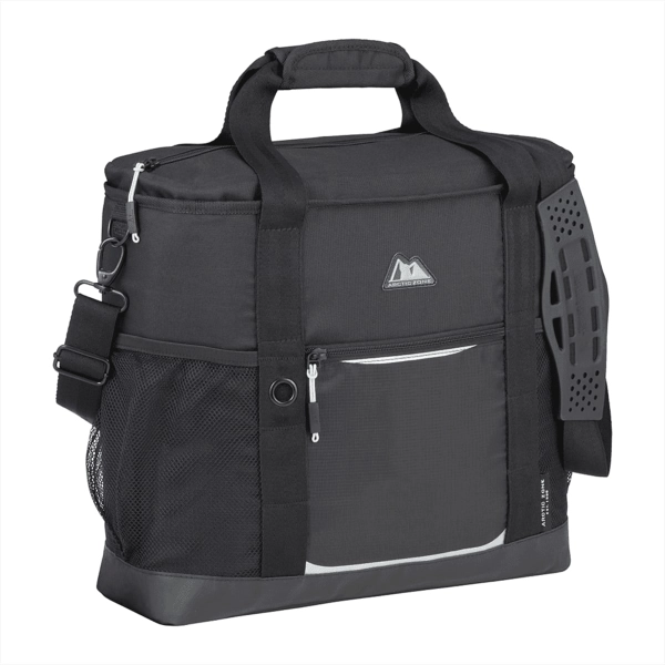 The Arctic Zone 30 can crib cooler features a sturdy, PEVA lining that keeps contents cold and prevents leaking. The cooler is easily portable with an adjustable shoulder strap and grab handles. The Ultimate Sport Cooler can hold up to 30 cans with a zippered main compartment, two side mesh pockets, and a front zippered pocket.