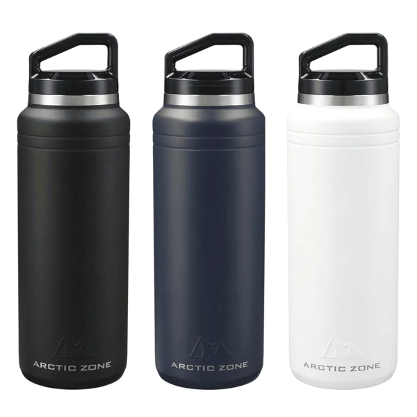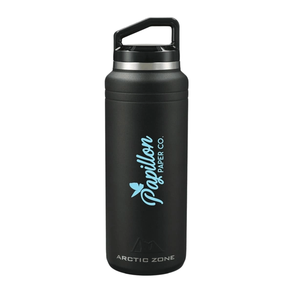 The Arctic Zone® Titan thermal HP® copper bottle 1L is designed for style and durability. Double-wall, 18/8 grade stainless steel vacuum construction with copper insulation keeps beverages hot for up to 12 hours or cold for up to 48 hours.