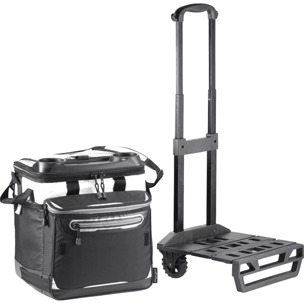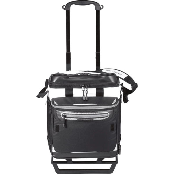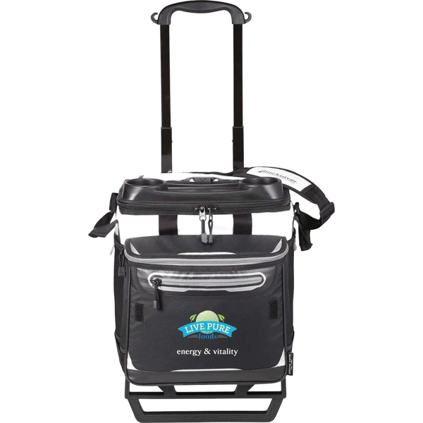 The Arctic Zone Titan Deep Freeze Rolling Cooler is perfect for any event. The Deep Freeze® high performance insulation, integrated heat barrier and Cold Block™ base helps keep ice for up to three days. The main compartment and front pocket can hold up to 58 cans. The easy access lid, beverage station and all-terrain cart with retracted, telescopic handles make this cooler easy to transport.