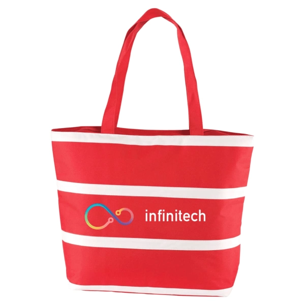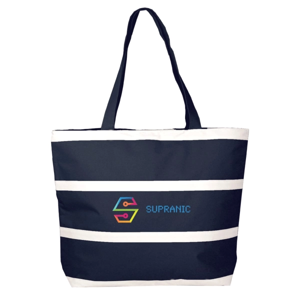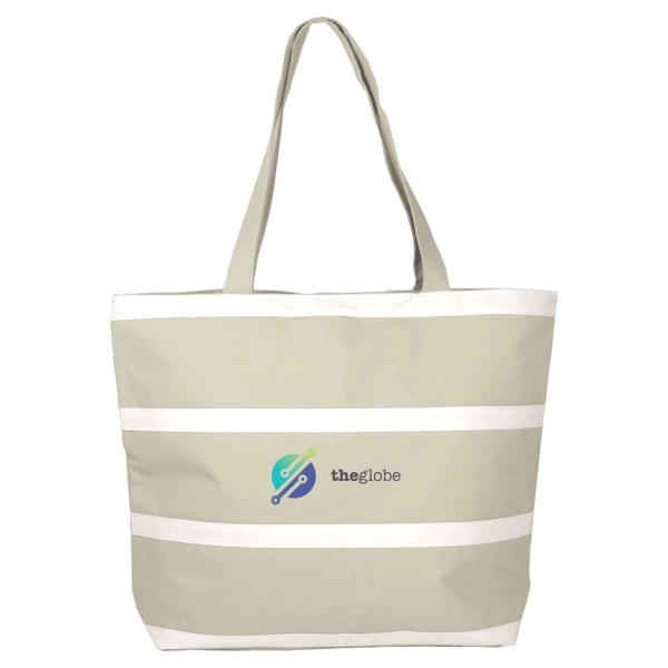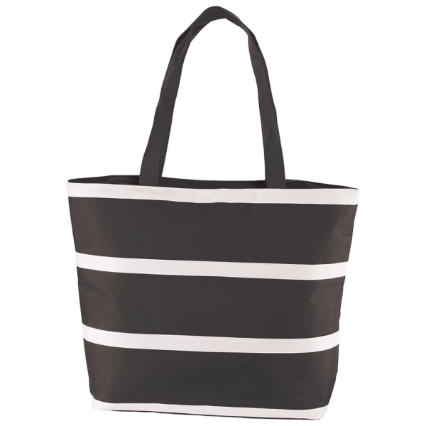 Stylish grey and white striped bag made from 600D woven polyester. Perfect to team with any of our towels.