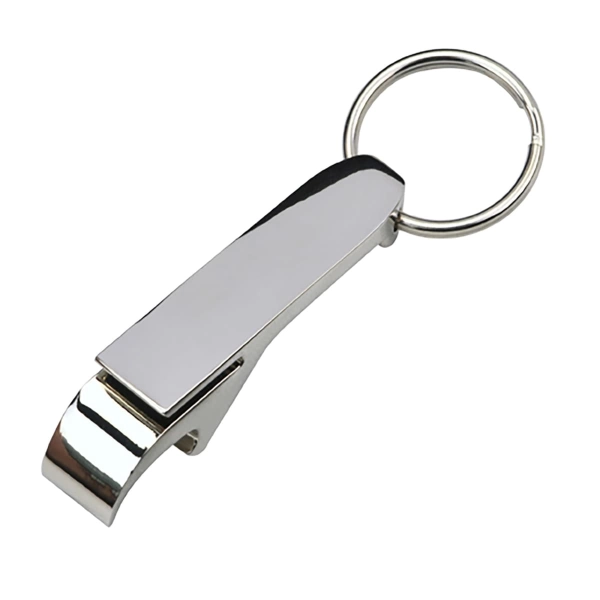 Shiny chromed handy bottle opener made from zinc alloy metal it can also open soft drink cans a great affordable promotional item for companies and clubs of all types.