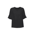 Easy slip on style top with soft fluted sleeves. Straight hem cut, wear trucked in or out.