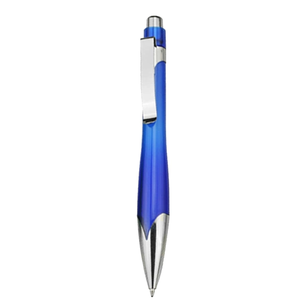 A design you won't forget water drop shape with click action plastic pen shiny silver chrome fittings high quality German manufactured black ink refill 1800 meters writing distance tungsten carbide ball provides you with quality writing.
