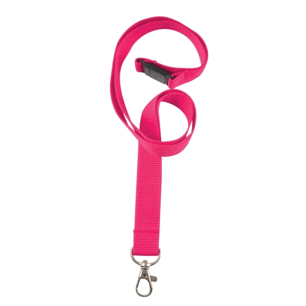 Woven printed lanyard screen printed 1 side. Choice of 15mm, 20mm, 25mm widths. Standard - swivel metal hook or Alligator Clip + breakaway fitting. Optional fittings (Dual metal clips, Alligator clip/s, plastic buckle and name badge holder available at additional cost). PVC holders available at additional cost - choice of 105mmL x 90mmH (holds up to 95mmL x 65mmH card) or 110mmL x 125mmH (holds up to 100mmL x 100mmH card).