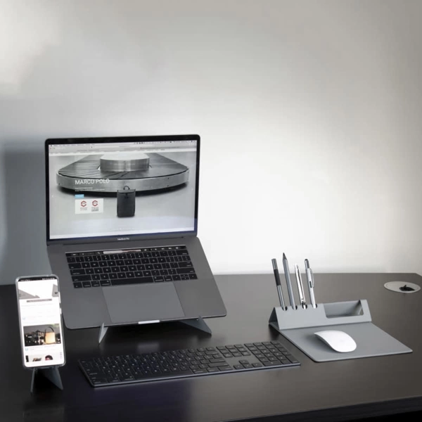 The Ascend Mini phone and tablet stand is designed to be lightweight, stable and portable. With its unique magnetic and folding closure, the Ascend Mini will organise your cables and keep your workspace clean and tidy while in the office or at home. Designed to hold any smartphone or tablet up to 13 inches including, iPad Pro and Surface Pro. This smart gadget should always be in your bag. Material: PU Board.