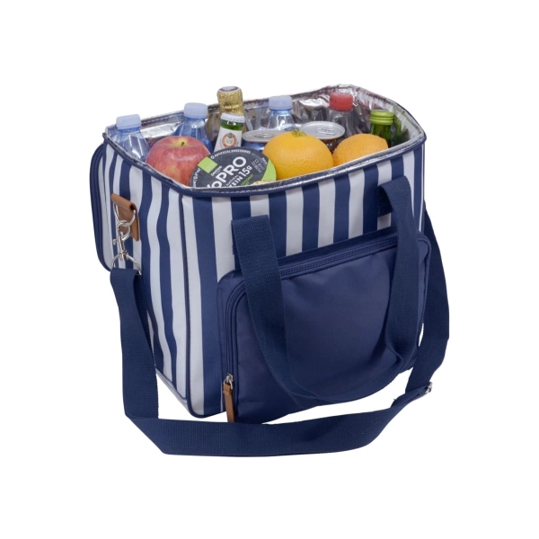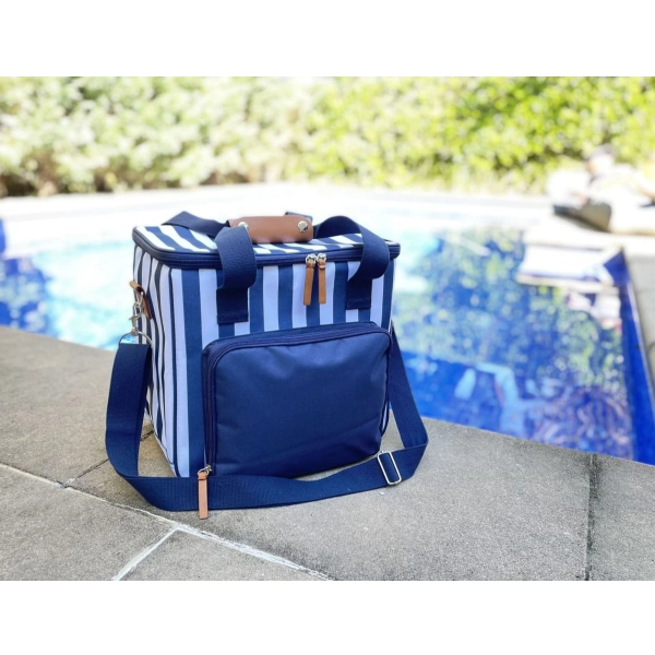 This stylish on-trend jumbo size cooler bag is designed to keep your food and drink ice cold all day. Made from striped polyester, Ascot Jumbo Cooler features high quality super-insulating foam combined with ‘A-Grade’ (food safe) waterproof aluminium lining. This top of the range cooler also features super-soft cotton handles & shoulder strap, leather look zip pullers, handle grip and trimming as well as a useful outer zip pocket.