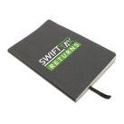 Introducing the Astro Soft Cover Recycled Leather Notebook, a sustainable and stylish addition to your stationery collection. This A5 eco-conscious notebook features a soft recycled leather cover with a ribbon page marker and matching colour edge stitching. Inside the back cover, you'll find a document holder for additional storage. It includes 80 leaves, offering 160 lined cream pages (70gsm) with date provision, perfect for organizing notes and ideas. Manufacturing Process for Recycled Leather: Recycled leather is made from genuine leather scraps that would otherwise end up in landfills. These scraps are shredded into fine fibres, which are then bonded to a micro-textile core using high-pressure jets.