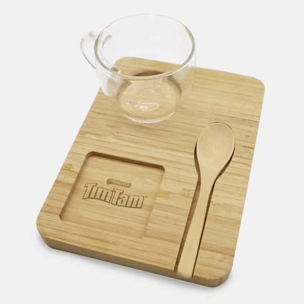The Aubrey Coffee/Tea Set brings together borosilicate glass with a beautifully matched bamboo base and spoon; an inviting combination for your morning routine or an afternoon pick-me-up. With a 180ml capacity, it’s the perfect size for espresso, tea, or a sweet treat on the side. Ideal for home use or café service, and a thoughtful gift that feels warm and personal. Please note: due to the natural bamboo grain, each engraved piece will have its own unique texture and tone.