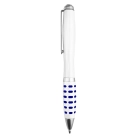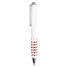 A quality heavy copper metal pen white barrel with silver trim and coloured soft-touch dotty grip. Click action with metal Parker-Type German manufactured black ink refill 1500 meters writing distance tungsten carbide ball provides you with quality writing. Copper barrel with chrome coated(engrave silver colour).