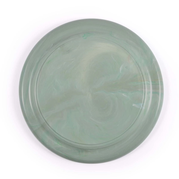 Round flying disks. Made from a variable ratio of recycled and raw polypropylene. Reduces the reliance on using all new materials. Made in Australia. Colour will typically be various shades of green blended with other colours but can be any colour subject to the recycled material master batch availability at the time of manufacture. Eco Credentials: Recycled Australian made materials, and printed using renewable energy.