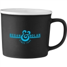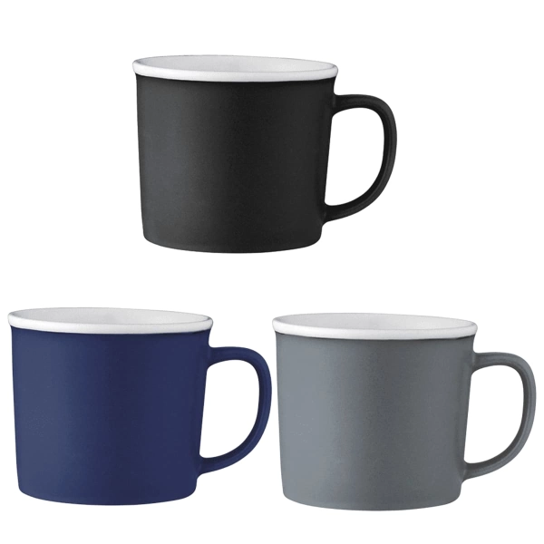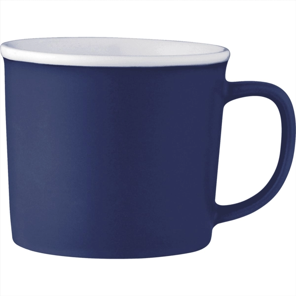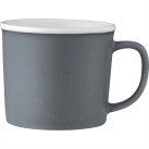 Cozy ceramic mug with smooth matte outer wall and white coloured gloss liner. Microwave safe. 350ml capacity. Hand wash only and follow any included care guidelines.