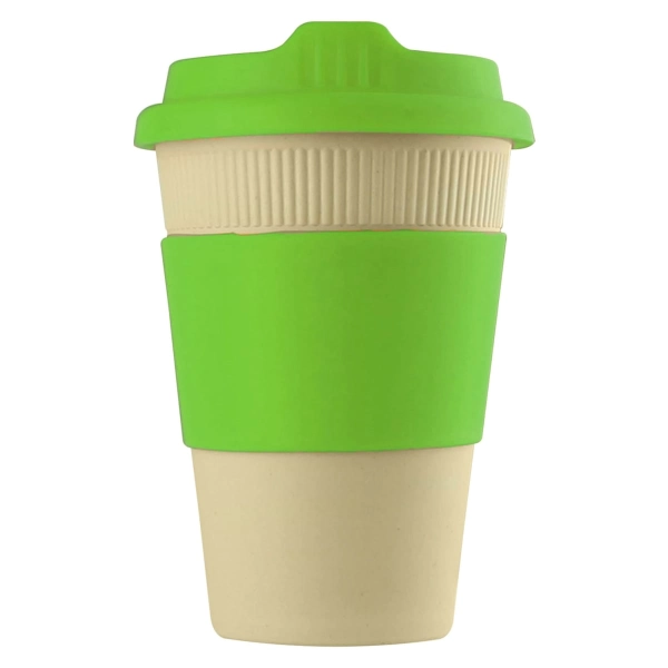 Eco-friendly 340ml single walled reusable bamboo coffee cup. It is made from a blend of natural organic bamboo fiber and Polypropylene. Renewable and biodegradable. The use of disposable plastic cups is no longer recommended as it pollutes the environment. The bamboo cup material is strong and durable.. Protect the planet and help to reduce plastic pollution by choose eco-friendly Bamboo cups as a marketing gift. Note the silicone band/lid is not recyclable material. Ensure handwashing only, not dishwasher safe. Not microwave safe.
