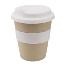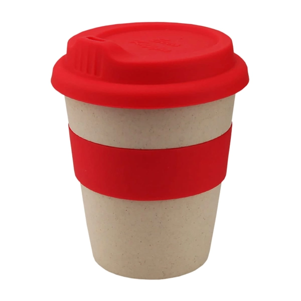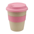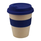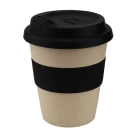 8oz (250ml) bamboo reusable coffee cup it is made from a blend of 30% natural organic bamboo fiber and 70% Polypropylene. Renewable and biodegradable. The use of disposable plastic cups is no longer recommended as it pollutes the environment. Strong durable and anti-bacteria. Dishwasher safe but microwave not recommended. BPA and phthalate free. European standard silicon material and BPA free cup. Mix and match silicon colours. Note the silicone band/lid is not recyclable material. This cup can hold up to 100 degrees celsius.