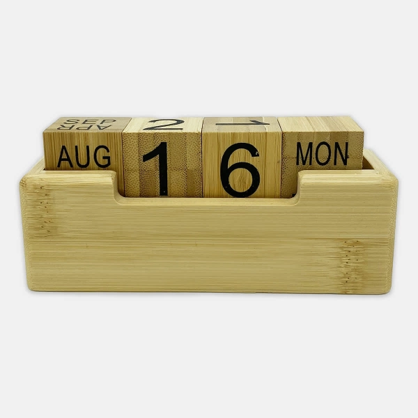 Our Eco-Minded Bamboo perpetual calendar, whether it’s at your office desk, coffee table, or window sill, sure knows how to leave an impression. The blocks are movable and are made with bamboo, with month, date, and day on!