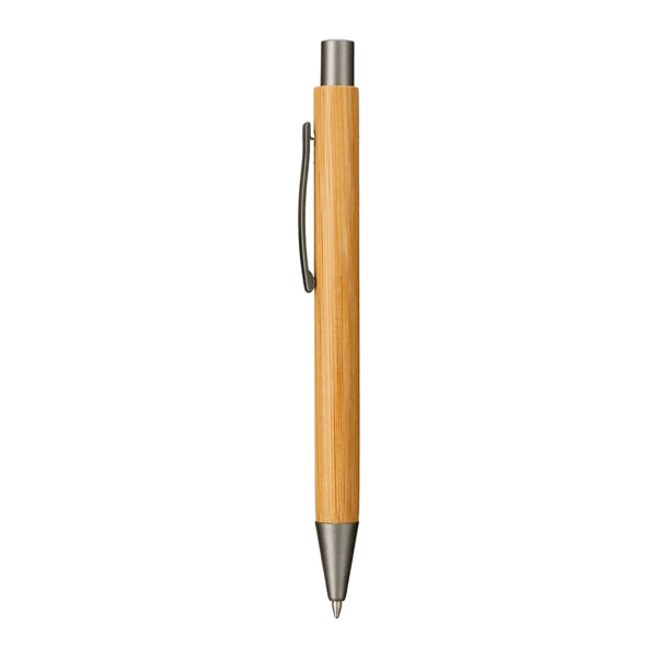 The Bamboo Ballpoint features a 100% bamboo barrel with gunmetal accents. Equipped with ultra-smooth, quick dry semi-gel black ink cartridge. Click action mechanism. Pen tip is 1 mm. Writing length is 800m.