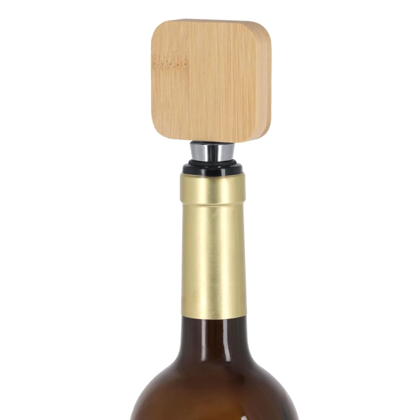 This bamboo wine stopper is a stylish, functional must-have for any occasion. Designed with a square bamboo handle and integrated bottle opener, it combines elegance with practicality. Perfect for wine and beer lovers, it offers ample space to showcase your branding. Ideal for corporate events, gifts, or personal use, this versatile stopper elevates your brand with sophistication.