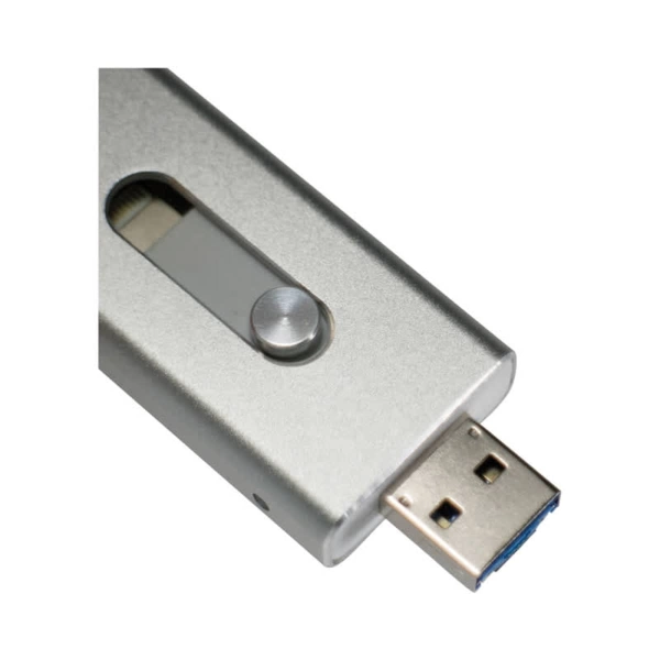 The Banion 3 in 1, On-The-Go (OTG) flash drive with its unique sliding USB connector provides reliable and stable data transfer between smartphones, tablets and computers. These multi connectors provide direct connection between Android iOS. Offers Grade A memory, 10 year data retention warranty and 1 year replacement warranty on faulty manufacture. Material; Aluminium, ABS