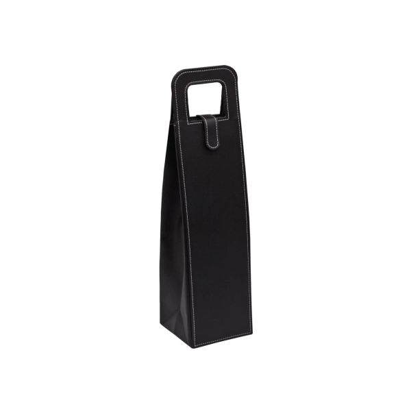 This quality BYO bag printed with your logo, makes the perfect corporate gift. Enhanced by the contrast stitching this leather-look wine bag folds flat for easy storage. Available in black.