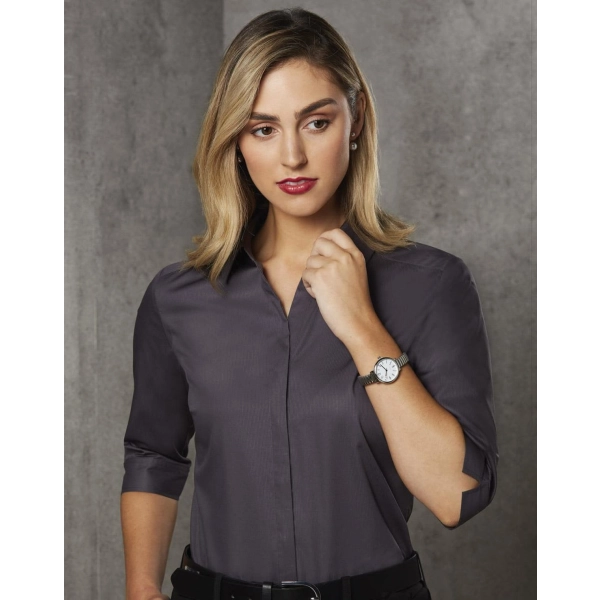 Ladies' Dobby Striped Taped 3/4 Sleeve Shirt