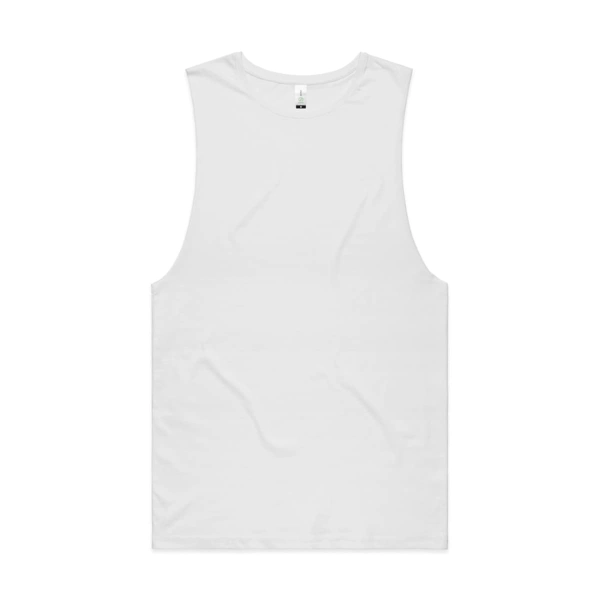 Raw armhole edges, neck ribbing with twin needle stitch, side seamed, double needle hems, preshrunk to minimise shrinkage