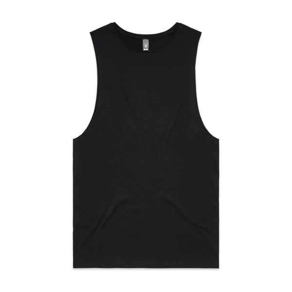 Sleeveless tank, raw armhole edges, neck ribbing, double needle bottom hem, preshrunk to minimise shrinkage
