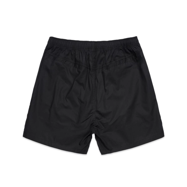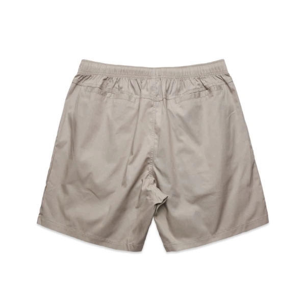 Casual shorts, 2 side and 2 back mesh lined pockets, shorter length, elastic waistband, internal drawcord, preshrunk to minimise shrinkage