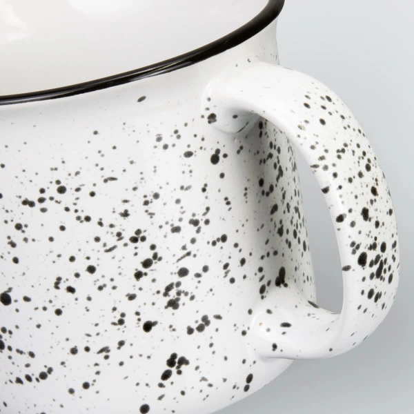Stylish 400ml ceramic mug featuring a solid gloss glaze finish with contrasting trim and speckled pattern that makes each mug unique. The comfortable handle and ample size make it perfect for enjoying your favourite beverage. This white speckled ceramic mug is more than just a drinking vessel - it's a daily dose of joy and style, making it an ideal gift.