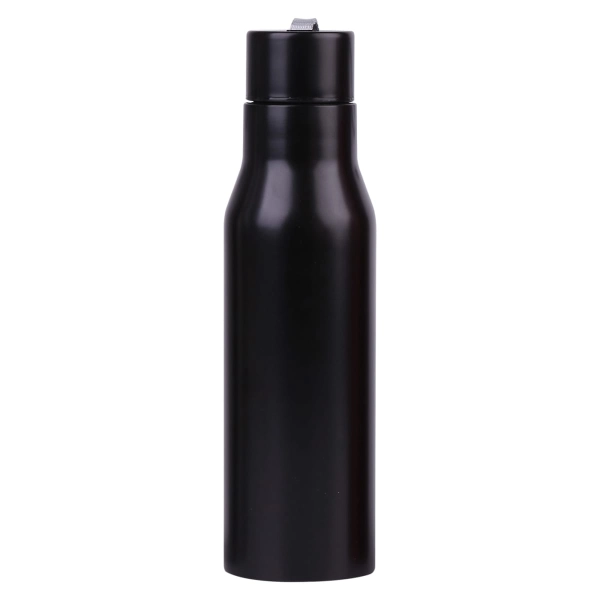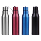 Stylish design 450ml BPA free stainless steel drinking bottle screw on lid with attached belt ring double walled and vacuum insulated made of food-grade 304 stainless steel. Metallic matt finishing exterior and electrolysis interior it is not dishwasher safe handwashing is recommended.